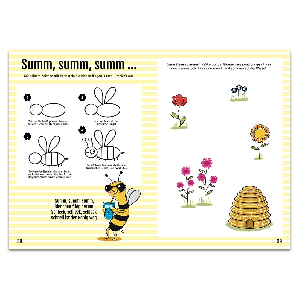 Für jedes Bild brauchst du nur weniger Striche und zeichnest dir im Nu deine eigene kleine Welt! Probier’s aus und leg direkt mit deinem Lieblingsmotiv los!