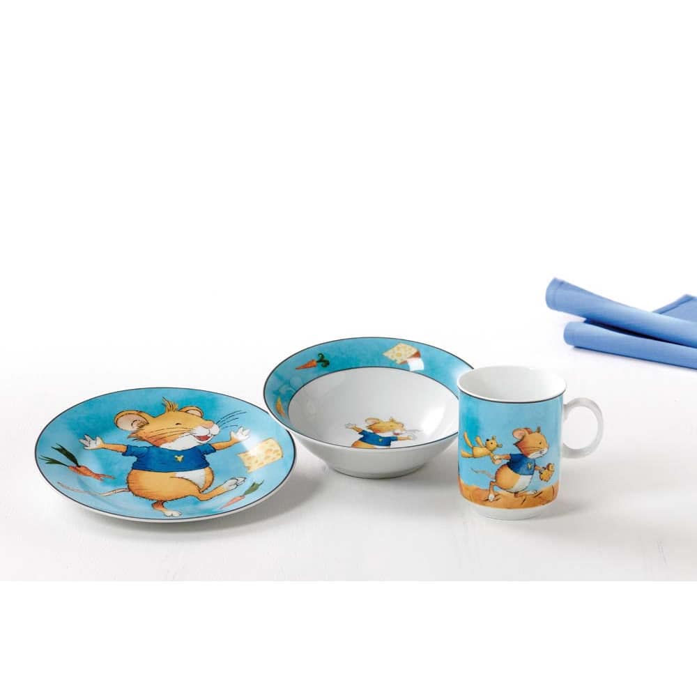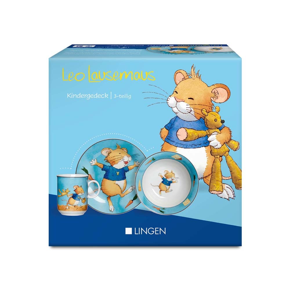 Auf dem Kindergedeck leistet Leo Lausemaus kleinen Jungen und Mädchen nette Gesellschaft beim Essen. Von dem liebevoll gestalteten Geschirr lassen sich die Kleinen garantiert nicht nur Pommes und Pasta, sondern auch Gemüse und Kartoffeln schmecken!