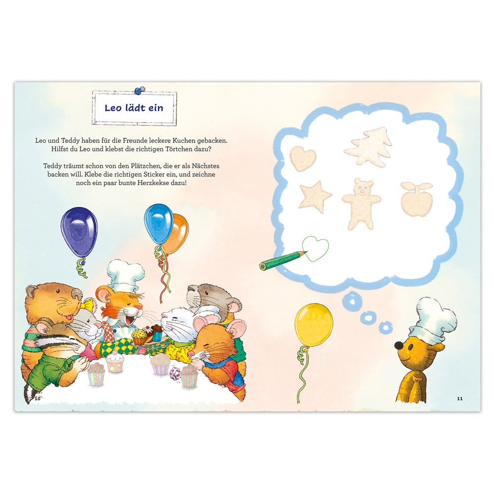 In diesem interaktiven Leo Lausemaus-Buch können kleine Sticker-Fans in Leos bunte Welt eintauchen und sie selbst mitgestalten: 250 fröhliche Sticker wollen platziert und zahlreiche Motive ausgemalt werden. Wer begleitet Leo in seinem Ruderboot? Was erblickt Teddy durch sein Fernrohr? Wen malt Fipsi auf die große Leinwand? Und was erleben Leo und seine Freunde im Kindergarten?