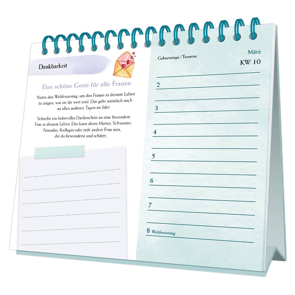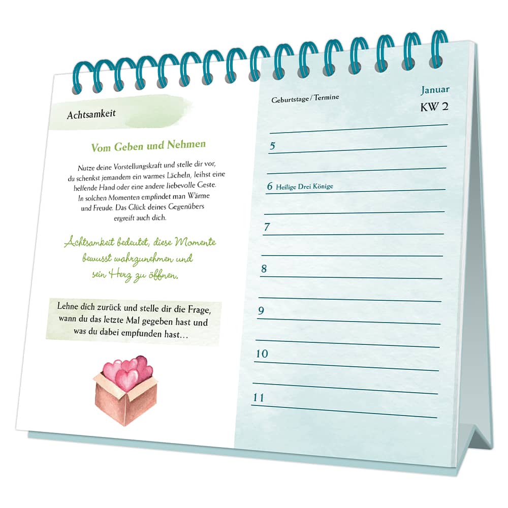 – in jeder Kalenderwoche Platz für Ihre Notizen, Geburtstage und Termine