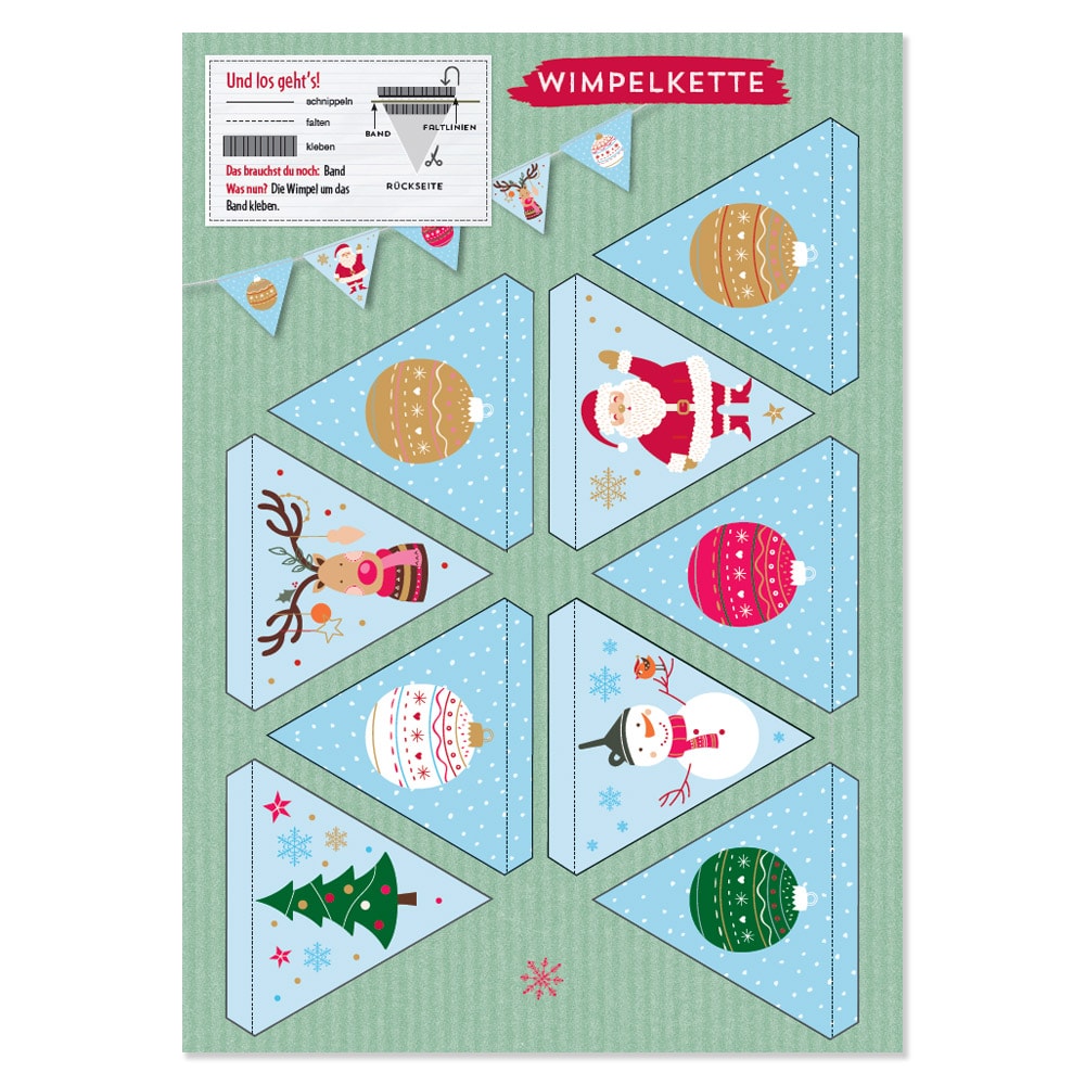 26 Blatt kunterbunter Bastelkarton mit Schnittvorlagen und Anleitungen für weihnachtliche Basteleien.